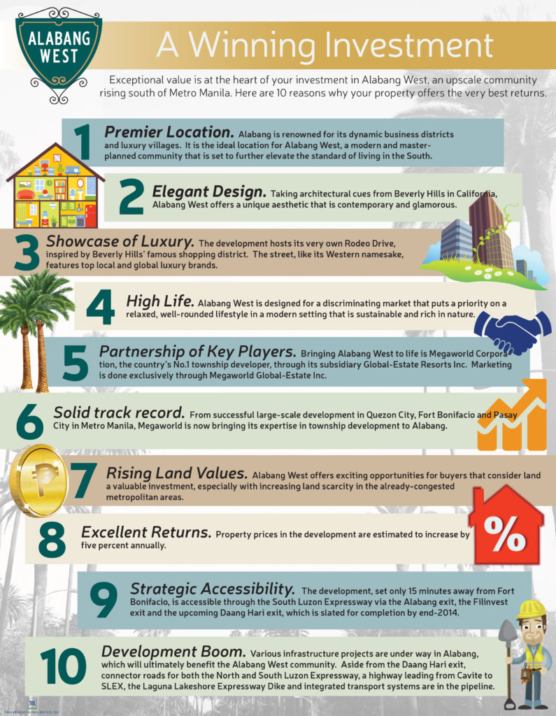 Alabang West will be the glam go-to place. You’ll almost feel like you’ve stepped into the movie set of “Pretty Woman” with the glamour of the West meeting the rustic ambience of the South. The 59 hectare development, will bring the chic and glamour of Beverly Hills in Manila’s very own South. It is poised to be the newest “it” place that will feature modern and elegant building ideas inspired by the Beverly Hills architecture and will also exude the fresh and stylish vibe of the famous city coupled with high-end shopping boutiques and classiest amenities.